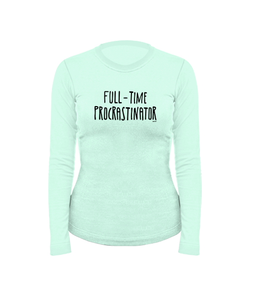 Women's cotton shirt with long sleeves for woman with design 1334 FULL-TIME PROCRASTINATOR in color MINT