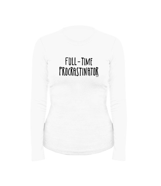 Women's cotton shirt with long sleeves for woman with design 1334 FULL-TIME PROCRASTINATOR in color WHITE