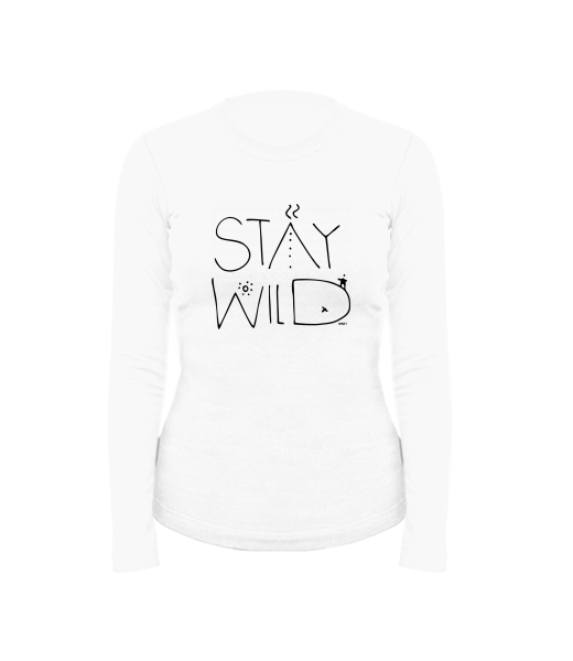 Women's cotton shirt with long sleeves for woman with design 1337 STAY WILD in color WHITE