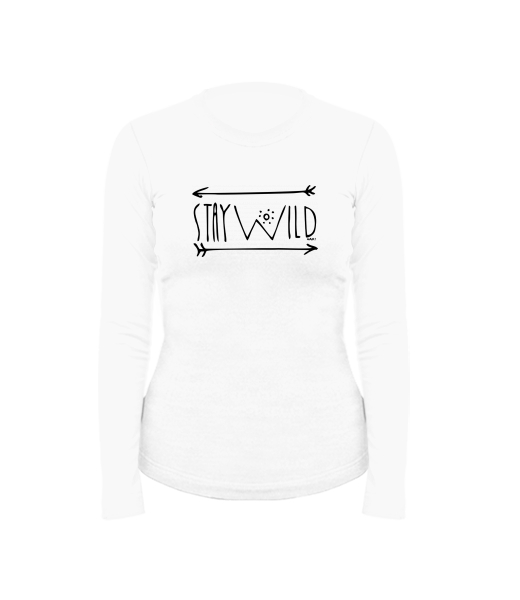 Women's cotton shirt with long sleeves for woman with design 1338 STAY WILD 2 in color WHITE