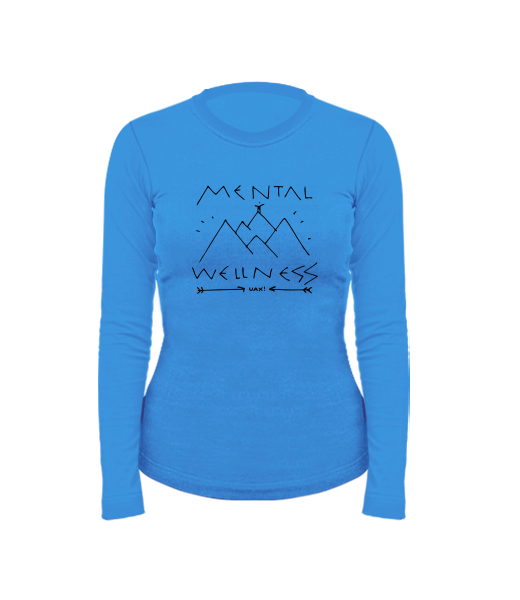 Women's cotton shirt with long sleeves for woman with design 1344 MENTAL WELLNESS in color CAPRI BLUE