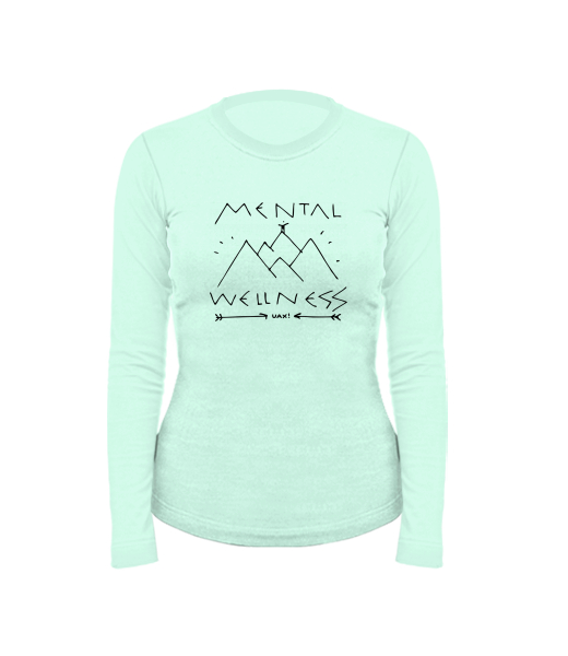 Women's cotton shirt with long sleeves for woman with design 1344 MENTAL WELLNESS in color MINT