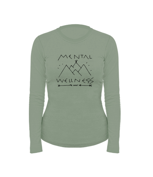 Women's cotton shirt with long sleeves for woman with design 1344 MENTAL WELLNESS in color OLIVA
