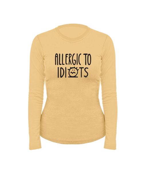 Women's cotton shirt with long sleeves for woman with design 1354 ALLERGIC TO IDIOTS in color MUSTARD