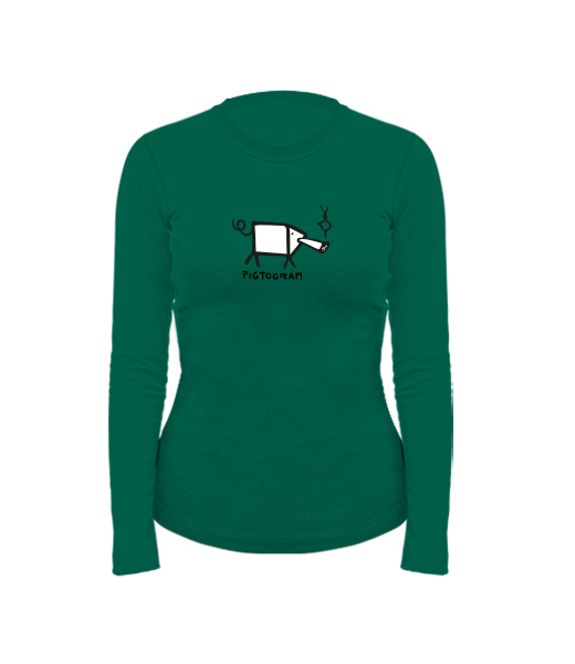 Women's cotton shirt with long sleeves for woman with design 367 PIGTOGRAM in color UNIVERSITY GREEN