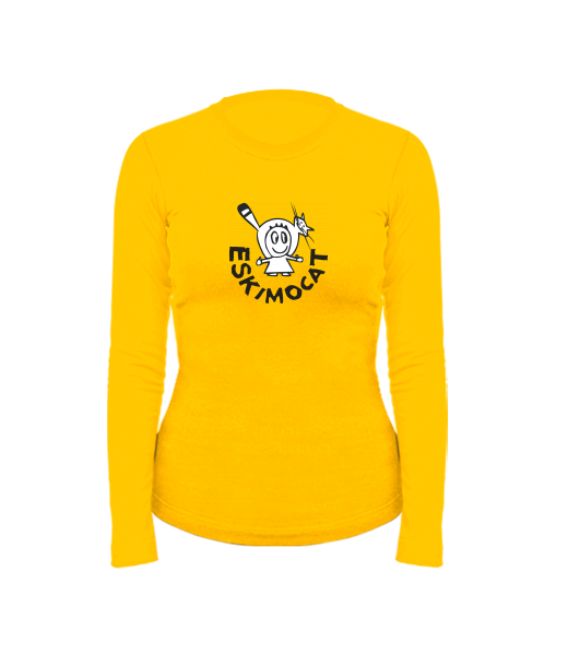 Women's cotton shirt with long sleeves for woman with design 375 ESKIMOCAT in color GOLDEN CREAM
