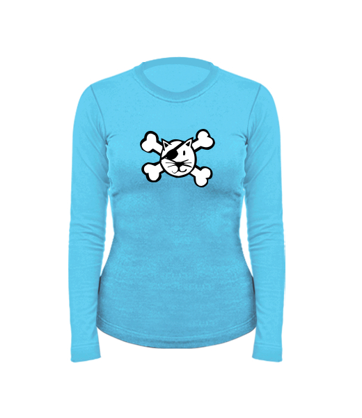 Women's cotton shirt with long sleeves for woman with design 377 PUSSY in color BLUE ATOLL