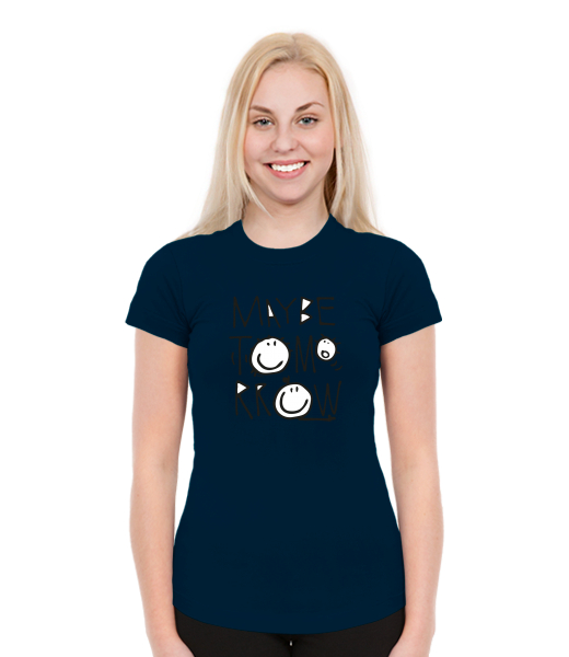 T-SHIRTS SKRATDA NEW for woman with design 1001 MAYBE TOMORROW in color DARK NAVY
