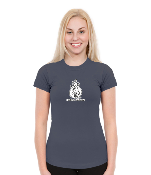 T-SHIRTS SKRATDA NEW for woman with design 1208 HOŘÍME LÁSKOU in color GRAY INK