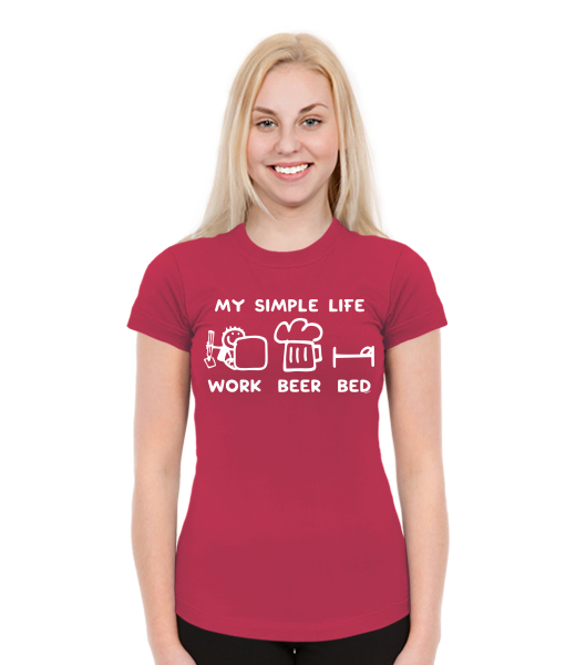 T-SHIRTS SKRATDA NEW for woman with design 1211 MY SIMPLE LIFE WORK BEER BED in color CHILLY PEPPER RED