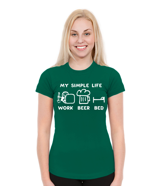 T-SHIRTS SKRATDA NEW for woman with design 1211 MY SIMPLE LIFE WORK BEER BED in color UNIVERSITY GREEN