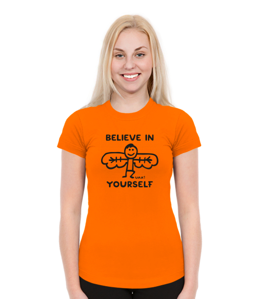 We make sustainable UAX clothing! - hand sewn in the Czech Republic uaxWomen uaxAll productsT-shirtsSKRATDA NEWdesign 1228 - BELIEVE IN YOURSELFSIGNAL ORANGE