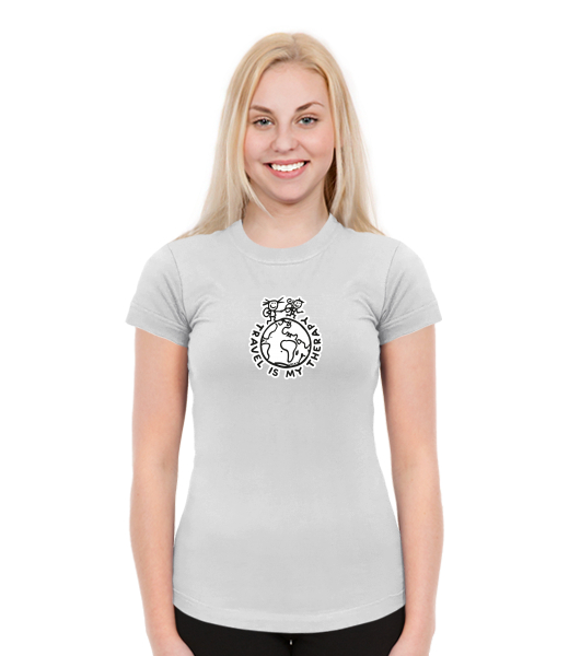 T-SHIRTS SKRATDA NEW for woman with design 1240 TRAVEL IS MY THERAPY in color CEMENT