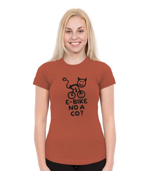 T-SHIRTS SKRATDA NEW for woman with design 1291 E-BIKE NO A CO? in color TERRA