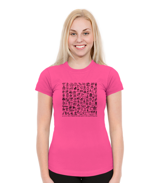 Women's cotton shirt SKRATDA NEW classical style t-shirt is perfect for everyday casual wear, but also leisure activities. Fitted women's t-shirt with Ribe around his neck. The rounded of the bottom front edge. Of the rear part of the slightly elongated. Made from 100% cotton, front printing choice. Choice of many colors. Very comfortable sports shirt SKRATDA NEW UAX! Sew and print in the Czech Republic!
