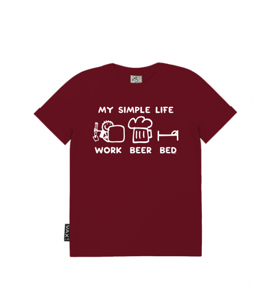 We make sustainable UAX clothing! - hand sewn in the Czech Republic uaxWomen uaxAll productsT-shirtsSKRATDA OHdesign 1211 - MY SIMPLE LIFE WORK BEER BEDDARK RED