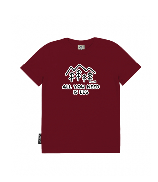 We make sustainable UAX clothing! - hand sewn in the Czech Republic uaxWomen uaxAll productsT-shirtsSKRATDA OHdesign 1279 - ALL YOU NEED IS LESDARK RED