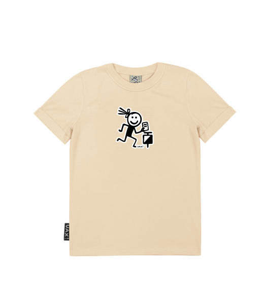 T-shirt cut and processing: Classic straight loose cut of the t-shirt (not oversize). The neckline is sewn with elastic ribbed trim. Double seams at the neck, on the sleeves and bottom hem. Bent sleeves. The t-shirt has a woven UAX label sewn into the side seam.