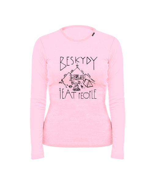 Trička s potiskem SKRATDA+ - dámské tričko s výběrem potisků for woman with design 1241 I EAT PEOPLE BESKYDY in color BABY PINK