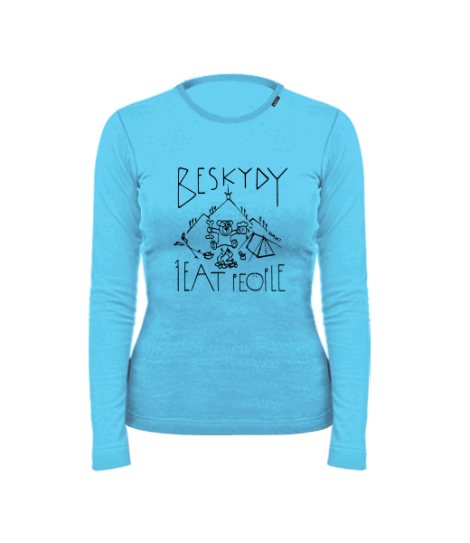 Trička s potiskem SKRATDA+ - dámské tričko s výběrem potisků for woman with design 1241 I EAT PEOPLE BESKYDY in color BLUE ATOLL