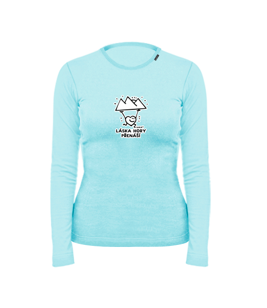 Trička s potiskem SKRATDA+ - dámské tričko s výběrem potisků for woman with design 1264 LÁSKA HORY PŘENÁŠÍ in color PASTEL BLUE