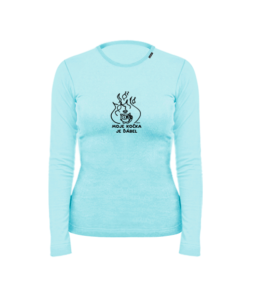 Trička s potiskem SKRATDA+ - dámské tričko s výběrem potisků for woman with design 1326 MOJE KOČKA JE ĎÁBEL in color PASTEL BLUE