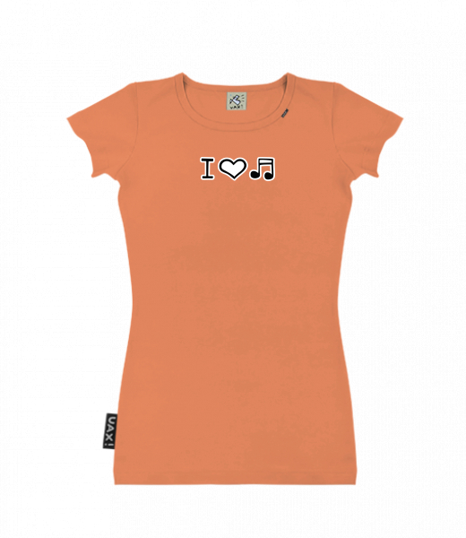We make sustainable UAX clothing! - hand sewn in the Czech Republic uaxWomen uaxAll productsT-shirtsSKRATDA T-SHIRTSdesign 1067 - I LOVE MUSICMANDARIAN ORANGE