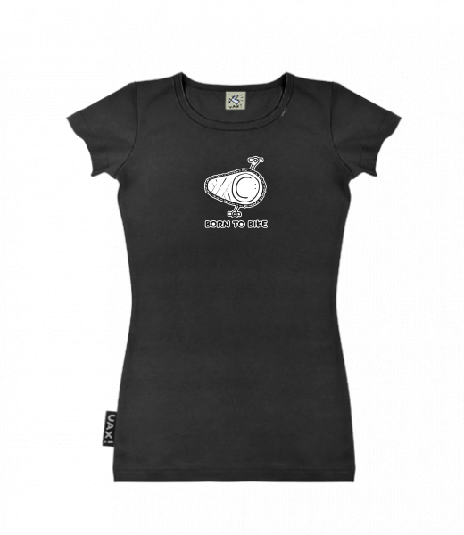 Dámské tričko s potiskem SKRATDA UAX! for woman with design 1074 BORN TO BIKE in color BLACK