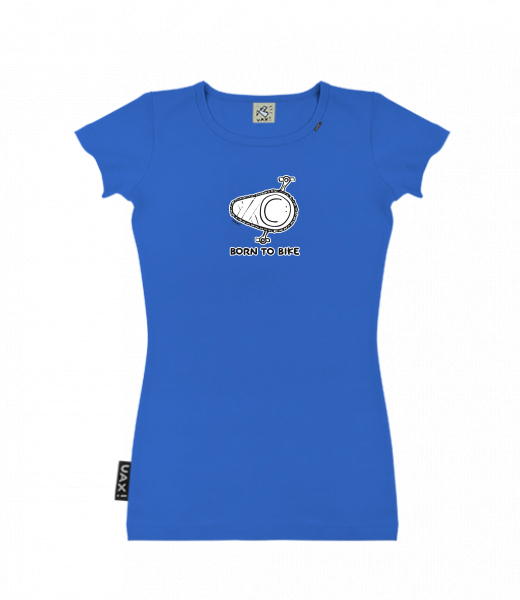 Dámské tričko s potiskem SKRATDA UAX! for woman with design 1074 BORN TO BIKE in color ROYAL BLUE