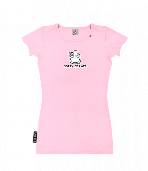 We make sustainable UAX clothing! - hand sewn in the Czech Republic uaxWomen uaxAll productsT-shirtsSKRATDA T-SHIRTSdesign 1087 - SORRY IM LATEBABY PINK
