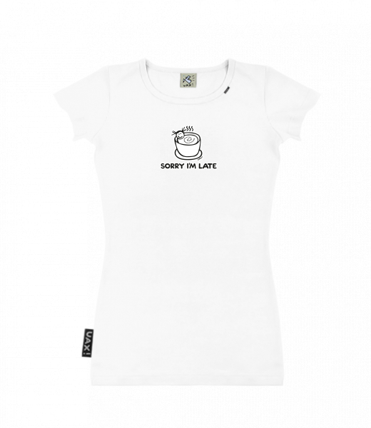 We make sustainable UAX clothing! - hand sewn in the Czech Republic uaxWomen uaxAll productsT-shirtsSKRATDA T-SHIRTSdesign 1087 - SORRY IM LATEWHITE