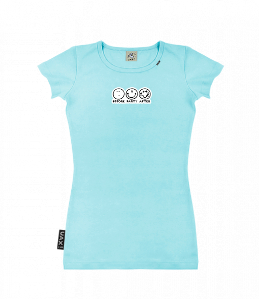 Dámské tričko s potiskem SKRATDA UAX! for woman with design 1120 BEFORE PARTY AFTER in color PASTEL BLUE