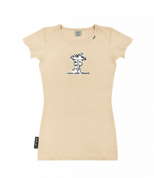 Dámské tričko s potiskem SKRATDA UAX! for woman with design 1128 LÁSKA HORY PŘENÁŠÍ in color CARAMEL