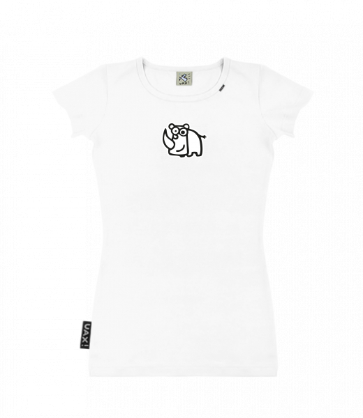Dámské tričko s potiskem SKRATDA UAX! for woman with design 1140 NOSOROŽEC in color WHITE