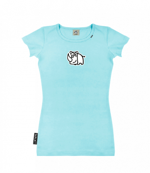 Dámské tričko s potiskem SKRATDA UAX! for woman with design 1140 NOSOROŽEC in color PASTEL BLUE