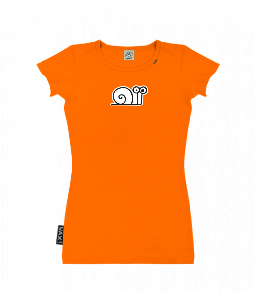 Dámské tričko s potiskem SKRATDA UAX! for woman with design 1153 ŠNEK in color SIGNAL ORANGE