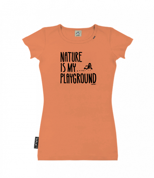 Dámské tričko s potiskem SKRATDA UAX! for woman with design 1160 NATURE IS MY PLAYGROUND in color MANDARIAN ORANGE