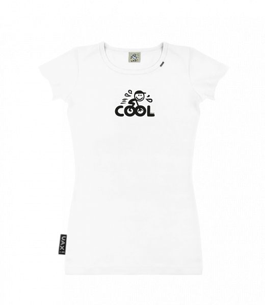 Dámské tričko s potiskem SKRATDA UAX! for woman with design 1169 COOL CYCLIST in color WHITE