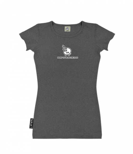 Dámské tričko s potiskem SKRATDA UAX! for woman with design 1184 BORN TO BE A FIREMAN in color GRAFIT