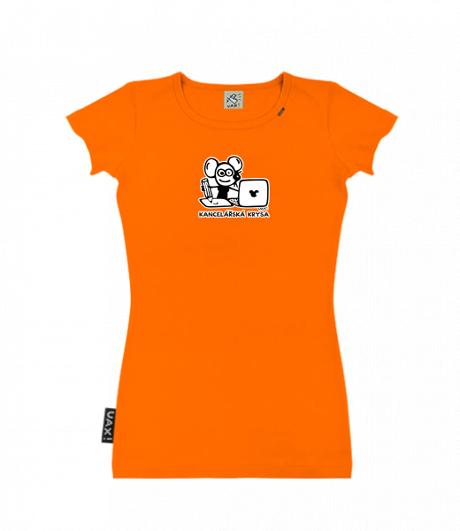 Dámské tričko s potiskem SKRATDA UAX! for woman with design 1191 KANCELÁŘSKÁ KRYSA in color SIGNAL ORANGE