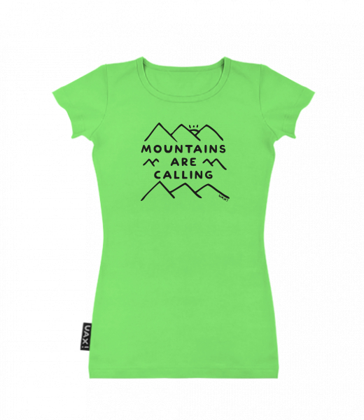 Dámské tričko s potiskem SKRATDA UAX! for woman with design 1204 MOUNTAINS ARE CALLING in color APPLE