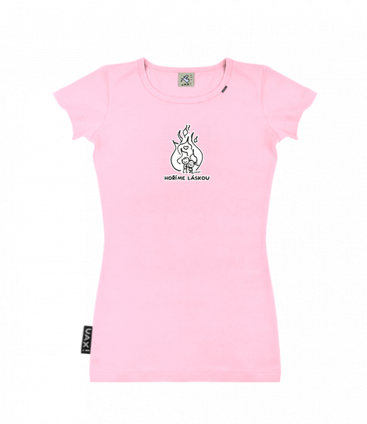 Dámské tričko s potiskem SKRATDA UAX! for woman with design 1208 HOŘÍME LÁSKOU in color BABY PINK