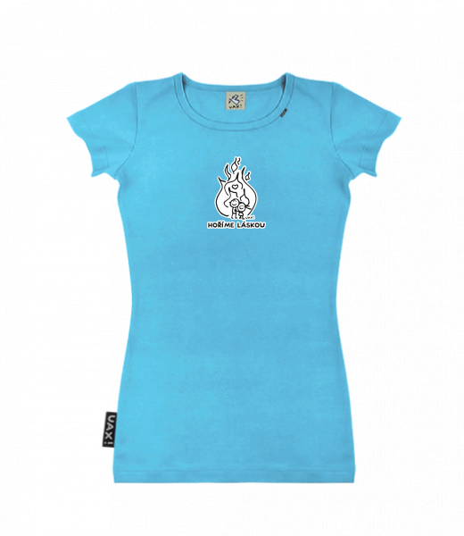Dámské tričko s potiskem SKRATDA UAX! for woman with design 1208 HOŘÍME LÁSKOU in color BLUE ATOLL