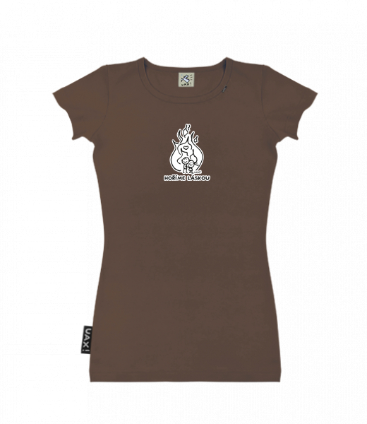 Dámské tričko s potiskem SKRATDA UAX! for woman with design 1208 HOŘÍME LÁSKOU in color CHESTNUT