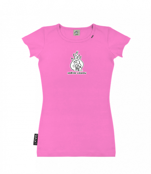 Dámské tričko s potiskem SKRATDA UAX! for woman with design 1208 HOŘÍME LÁSKOU in color CLASSIC PINK