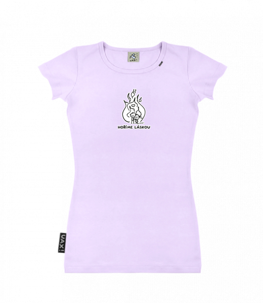 Dámské tričko s potiskem SKRATDA UAX! for woman with design 1208 HOŘÍME LÁSKOU in color LAVENDER