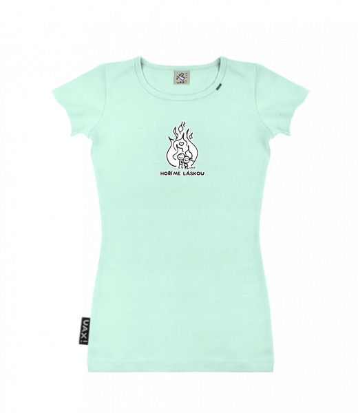Dámské tričko s potiskem SKRATDA UAX! for woman with design 1208 HOŘÍME LÁSKOU in color MINT