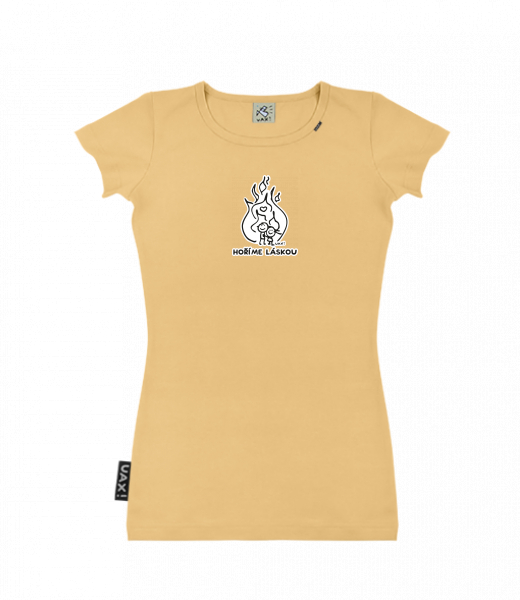 Dámské tričko s potiskem SKRATDA UAX! for woman with design 1208 HOŘÍME LÁSKOU in color MUSTARD