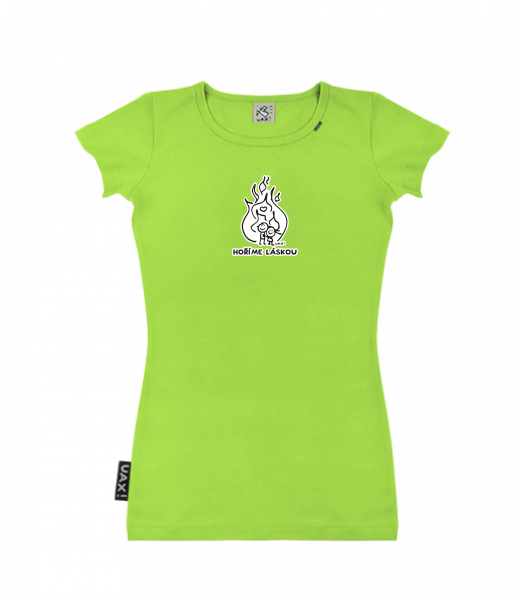 Dámské tričko s potiskem SKRATDA UAX! for woman with design 1208 HOŘÍME LÁSKOU in color PARROT GREEN