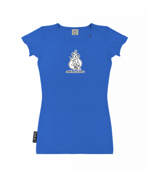 Dámské tričko s potiskem SKRATDA UAX! for woman with design 1208 HOŘÍME LÁSKOU in color ROYAL BLUE